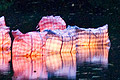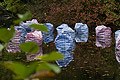Standort 5 TASCHEN II Christiane Stegat Ihr Markenzeichen ist ihre Universalität: Überall auf der Welt, wo es um den unkomplizierten Transport von alltäglicher Habe geht, kommt diese Plastiktasche zum Einsatz. Ihre Größe variiert, genau wie die Farbgebung des Musters. Und dennoch erkennt man die billigen Beutel sofort. Sie sind auf das Notwendigste reduziert, ästhetische Ansprüche spielen ebenso wenig eine Rolle, wie die Tasche echtes Reisegepäck sein will, denn auch dafür reicht der Komfort nicht. Christiane Stegat ignoriert die Funktionalität des Objekts. Die Künstlerin schaut den Gegenstand ihres Interesses so distanziert an, als sähe sie ihn zum ersten Mal. Wichtig ist ihr die klare, rechteckige Form, das Volumen und sind die Möglichkeiten, die das Material unabhängig von seiner Stabilität sonst in sich birgt. „Taschen II“ konzentriert sich auf genau jene Qualitäten. Zum Vorschein kommen sie, weil Christiane Stegat ihre insgesamt 20 Taschen, die teils auf festem Grund stehen und teils auf dem Wasser schwimmen, von innen illuminiert. Wiederum mit einfachen, handelsüblichen Teichkugellampen, aus denen zusammen mit dem halbtransparenten Stoff allerdings eine Installation von irritierender Schönheit entsteht, die über der nächtlichen Landschaft zu schweben scheint. Mit dieser Befragung des Vertrauten und seiner Überführung in einen ungewohnten Kontext sensibilisiert die Künstlerin nicht nur den Betrachter. Sie lässt auch die Alltagsgegenstände fremd und artifiziell wirken und gibt ihnen damit ein Stück Geheimnis zurück. Text: Christiane Meixner