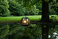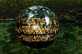 Standort 10 IDENTITY SPHERE Helga Griffiths Ohne sichtbaren Halt schwebt die große Edelstahlkugel von Helga Griffiths über der Wiesenfläche. Eine harte Schale, die Schutz verspricht und doch enthüllt, was sonst nicht sichtbar ist: den genetischen Code der Künstlerin. Die glänzende Hülle der Arbeit „Identity sphere“ ist perforiert und damit durchlässig geworden. Aus ihrem Innern dringt ein starkes Licht, das die intime und zugleich abstrakte Information aus dem Zellkern von Helga Griffiths auf die Oberfläche der Kugel schreibt und weit darüber hinaus strahlen lässt. Benachbarte Bäume wie Büsche werden von ihrem Widerschein erhellt, und auch der Betrachter fungiert als Projektionsfläche jener Zeichen, die man sonst nur unter dem Elektronenmikroskop entdecken kann. Ein Abgleich der beunruhigenden Art, denn das individuelle genetische Erbe von Helga Griffiths legt sich wie eine zweite Haut über die fremden Körper. Ein Code wird theoretisch lesbar gemacht und im gleißenden Lichtschein gleich wieder verzerrt. Die Künstlerin kehrt ihr Innerstes nach außen, zeigt sich verletzlich und überlagert im selben Moment die Identität anderer mit ihrem persönlichen Code. Hart und weich, hell und dunkel, Rückzug und Angriff: „Identity sphere“ speist sich aus solchen Gegensätzen. Das Spiel der Kräfte spricht alle Sinne an und schafft einen ephemeren Ort, an dem sich Phänomene überlagern. Dank ihrer schärft die Künstlerin die Wahrnehmung und rückt die Schnittstelle von Kunst und Wissenschaft ins Zentrum einer ästhetisch-kritischen Betrachtung. Text: Christiane Meixner